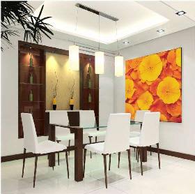 要想讓不太寬敞的用餐空間變得亮麗就需要用心選擇餐臺(tái)椅和燈具。小面積的餐廳最好選用可折疊的多用餐臺(tái),大面積的餐廳可選用長(zhǎng)條的餐臺(tái);如果是與客廳相連的開放式餐廳,因?yàn)榭梢猿薪觼碜钥蛷d的照明,因此在餐臺(tái)上方加裝一盞吊燈就能充分照明;若為獨(dú)立式的餐廳,燈光的充足是必要的,除了頂上的主燈之外,可以加裝壁燈或地?zé)魜硌a(bǔ)充光源,會(huì)營(yíng)造出更好的用餐氣氛。