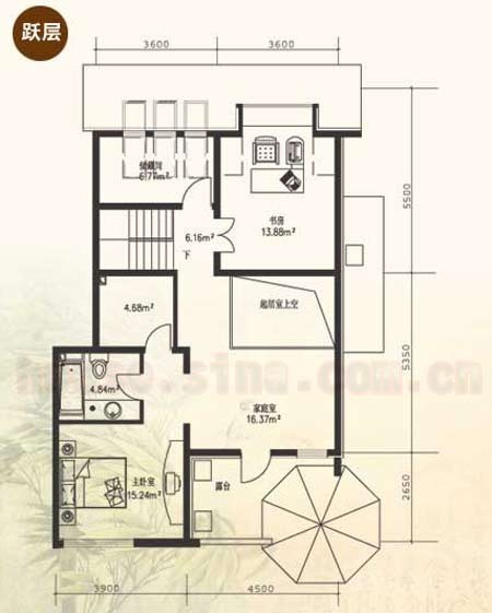 5、屋頂造型空中露臺,形成從家庭室望出去的浪漫視覺焦點。