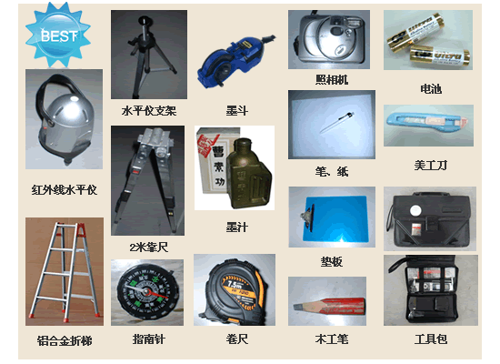 準(zhǔn)備一把拉尺(鋼卷尺)最好是6米長(zhǎng)的,準(zhǔn)備一些白紙、幾支不同顏色的筆,列入鉛筆(要HB的),藍(lán)、紅、黑色纖維筆(圓珠筆也可以)等,還有橡皮擦。