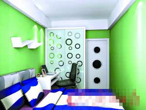 兒童房的設(shè)計(jì)很巧妙,鉛筆被涂成了草地的綠色,彰顯著運(yùn)動(dòng)的張力。除了主色調(diào)之外,其他地方的設(shè)計(jì)也強(qiáng)調(diào)著孩子的個(gè)性。衣櫥采用的是磨砂的藝術(shù)光化玻璃。衣櫥的圓形圖案則使整個(gè)房間活潑起來。臥室的門雖然是玻璃,但這種不透明的玻璃卻保證了孩子的隱私。