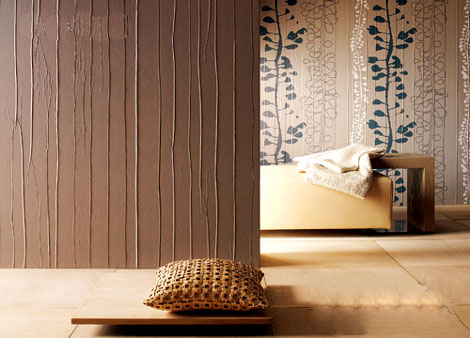 主體特征:這類壁紙不論采取什么工藝或材質(zhì),目的都很明確:讓墻紙無論在視覺上還是觸覺上都更加立體。最簡單的方法是采用PVC加發(fā)泡劑或其它成分貼于紙底上,制造出要追求的各種紋理;較為復(fù)雜的方法是采用介于壁紙和涂料之間的新型墻面裝飾材料——墻基布,以特有的豐富肌理,配合墻漆,展示出獨(dú)特的三維立體效果,從而脫離了傳統(tǒng)墻面簡單的色彩搭配,更為喜愛自己動手的人增添了許多DIY的樂趣。