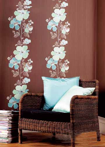 主體特征:大麗花、雛菊、罌粟、郁金香等輪廓柔美的花形開始升溫,立體花朵有所退潮,平面印染的方式使得大面積花朵更富新鮮的春夏氣息。因為色彩柔和,圖案唯美,這類壁紙適合使用在居室墻面的各個角落,顏色稍重的適合作背景墻,顏色稍淺的適合鋪滿整個墻面。絲絨纖維的壁紙材質(zhì),是表現(xiàn)大面積印花壁紙圖案的首選載體,不但后期更宜鋪貼,還具有環(huán)保耐損的特性。