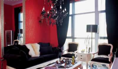 大廳的墻是紅色,很扎眼,但家具是白色的,窗簾是黑色的,這幾種顏色搭配起來特別鮮明。樓道吉米選擇綠配紫,屬于對(duì)撞的顏色里最沖突的,吉米說只有這樣才會(huì)把主題包括主人的個(gè)性充分表達(dá)出來,非暖即冷,反正不會(huì)選擇中庸。