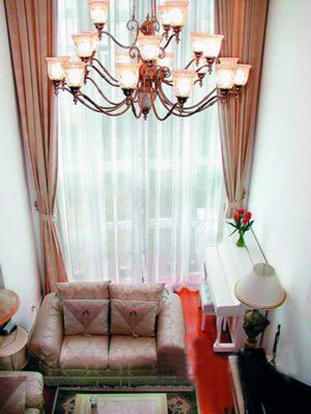 如果房間墻壁上有一塊大鏡子,鏡子里就可以反映出全屋的景象,似乎有一種房屋擴(kuò)大了的感覺,其實(shí)是這種光學(xué)幻覺在起作用。鏡子可使你感覺到房間多了一扇窗似的,并能獲得另一個光源。白色沙發(fā)、橙色椅子和*墊、同色的墻與地面,在光與影、虛與實(shí)中回旋,安靜、高貴卻時刻閃現(xiàn)著青春的色彩。