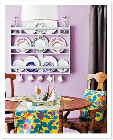 西洋丁香:丁香色這種淺淺的紫,總能令空間顯得嬌柔淡雅,與溫暖而古典的木質(zhì)家具搭配,能彰顯出一種優(yōu)雅從容的味道。點(diǎn)綴些明亮的黃綠色調(diào)配飾或青花瓷器,能大大提升空間的明度與彩度。