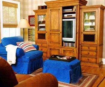 嵌入式的電視柜能讓客廳的儲(chǔ)物空間增大,周?chē)墓褡涌梢苑艜?shū)、DVD等物品。