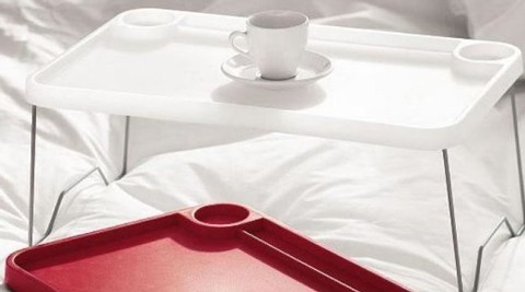 人人都說坐著沒有躺著舒服,如果可以將所有的工作都搬到床上豈不是美哉?懶人桌的出現(xiàn)可以說是將“懶人”的特性發(fā)揮到了極致。懶人桌有床上桌和床下桌兩種,前者是可以放置在床上的小桌,用戶可以將筆記本電腦、書本、水杯等一切物品放置其上,真正實現(xiàn)把客廳、書房、餐廳統(tǒng)統(tǒng)搬到床上的“懶人美夢”。同時,有的床上桌還增添了新工藝,有的桌面可以抬起,有的增加了推拉隔層,總之都是怎么方便、怎么順手就怎么設(shè)計。床下桌則是一種桌面可直接延伸至臥床上方的懶人桌,其桌腿部位的輪子使之真正實現(xiàn)了招之即來、推之即去。