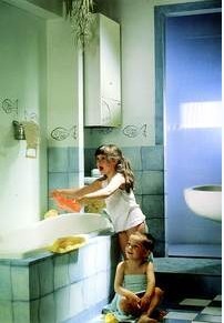 可移動的金屬三腳架,釘在墻上的金屬擱物架,輕便的凳子等等浴室小配件,使浴室零碎空間得到充分的使用。