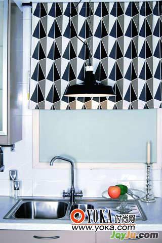 11.窗簾不一定都是長可曳地,根據(jù)實際需要,長度靈活調(diào)整,半簾在廚房就很實用。廚房對私密性的要求不高,因此,此處用了長度僅為60厘米左右的半簾,廚房一般都不是南北向的,所以光線不至于太強。半簾在有限度遮擋部分光線的同時,不至于遮蔽所有視線,在廚房勞作時還能看到一些窗外的景物,愉悅廚房心情。