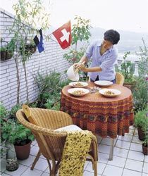 花園是要拿來(lái)“用”的,一處可坐下來(lái)休憩、用餐,甚或閱讀、曬太陽(yáng)的空間就非常重要,家中多出的桌椅,就趕緊擺出來(lái)吧!不過(guò)家具跟花器一樣,也同樣有適合戶外用的材質(zhì),像是塑料、鋁、鑄鐵、防腐木等。許多戶外家具如搖椅、躺椅,還有別忘了遮陽(yáng)傘,都獨(dú)具悠閑感,讓頂樓就是日光浴場(chǎng)!