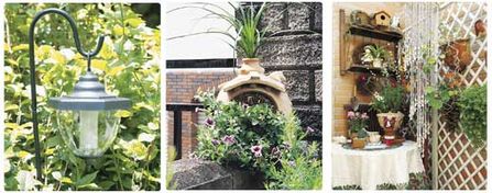 花園里有了夜晚的照明,才能延長(zhǎng)你休憩的時(shí)間。假如你的頂樓原本就沒(méi)有安裝燈,又不想再接電線(有時(shí)電線在盆栽四周也有潮濕危險(xiǎn)),那不妨用方便安全的太陽(yáng)能戶外用燈,接滿太陽(yáng)能可照明6~8小時(shí),天氣不佳時(shí)白天可拿到室內(nèi)接受光源亦可。