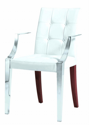 這把座椅雖然帶給人們的整體視覺(jué)感受是種脫離塵囂般的純凈高貴,但組成座椅的不同材質(zhì)卻令人在細(xì)細(xì)品位時(shí)得到迥異的心靈觸動(dòng)--白色真皮烘托出一種嫻靜的高雅,同時(shí)不失溫和與親近;銀色金屬渲染出一種低調(diào)的張揚(yáng),帶著中性與前衛(wèi)。