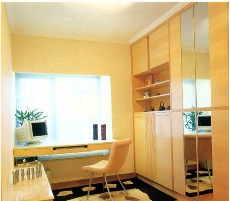 書房是陶冶情操、修身養(yǎng)性的幽谷,一般陳設(shè)有寫字臺(tái)、電腦操作臺(tái)、書柜、坐椅等。寫字臺(tái)和坐椅形狀要精心設(shè)計(jì),做到坐姿合理舒適,操作方便自然。