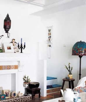大膽設(shè)計(jì)的歐式壁爐,線(xiàn)條硬朗的地磚,小時(shí)候的木凳子,各處淘來(lái)的各色小品……