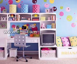 現(xiàn)在給十幾歲的孩子購置桌椅的時候,要考慮現(xiàn)在已進入電腦時代。這里同時使用了橙色來裝扮其周圍的空間,留言板和鏤空的存儲單元都讓整個區(qū)域能夠滿足孩子日常需求。