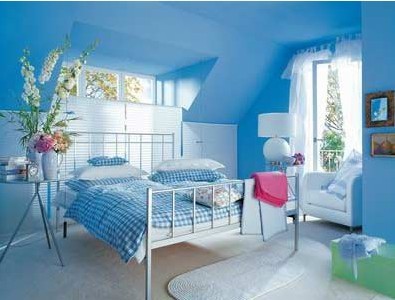 藍(lán)色主臥室,讓最平淡的日子也香艷起來,香艷這個(gè)詞,在古時(shí)候也是用來形容女子閨房的。不過,顯然,現(xiàn)代的香艷才是更符合它的字面意義的。所謂艷,即明艷。強(qiáng)調(diào)的是色彩,并且是濃烈而明亮的色彩,愛琴海一般的冰藍(lán)、山茶花一樣的純紅、檸檬原色的明黃,以及泛著光彩的亮白,只有春天的水果和鮮花的顏色才有資格被一一臨摹。而香,則和那一抹存在于四周卻不得描摹形狀的溫馨氣味一樣,不是一盞冰藍(lán)的水晶燈,或者一套淡綠的茶具、一雙亮紅的塑膠拖鞋,而是這些所有細(xì)枝末節(jié)的總和。沒有實(shí)體,而只能借助一切精致的道具,從骨髓往外滲透的這種情調(diào),一定要給它一個(gè)稱謂的話,姑且我們可以叫它小資。