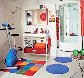 當(dāng)你有了一個(gè)純白的底色時(shí),你就可以讓顏色在上面歡呼雀躍了。純凈的紅黃藍(lán)綠任意穿梭翻滾,可以有點(diǎn)卡通,可以有點(diǎn)童趣,可以丁丁當(dāng)當(dāng)如童聲笑語(yǔ)般張揚(yáng)燦爛。白色是最好的底色,只需要留住足夠的底色,其他顏色便可以百無(wú)禁忌。同理,在選擇浴室用具上,新穎、別致、夸張的造型是上選。