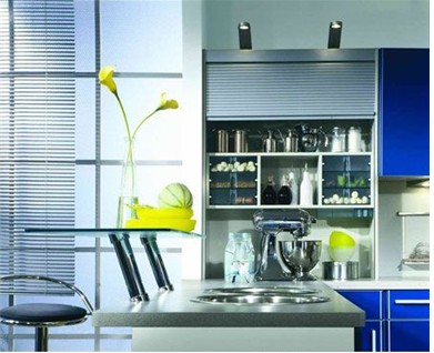 小廚房的每一方空間都應該充分利用,拐角也不例外。這時候小小的轉角柜自然就大顯身手了,既增加了廚房吞吐量,又解決了兩邊櫥柜 在拐角處斷裂的難看與空間浪費。