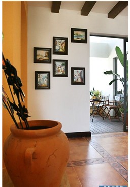 用白色椅面的沙發(fā)坐椅給客廳鋪展一片白沙般的夏日效果,沙發(fā)布藝應(yīng)該以棉織物為主,圖案選擇格子、條紋或花朵圖案都很恰當(dāng),簡單卻豐富的藍(lán)白組合圖案最易傳達(dá)出普羅旺斯鄉(xiāng)村的獨有神韻。沙發(fā)區(qū)可以鋪一塊圖案繁復(fù)的歐式地毯,來表現(xiàn)鮮明的異域感。墻面使用淡黃色,可以讓圓拱穹頂更加明朗、柔和。地中海風(fēng)格的住宅少有浮華的裝飾,生活空間的休憩區(qū)力求柔軟舒適,最后,在藍(lán)白主色調(diào)中加入一點紅,營造純樸輕松的環(huán)境。